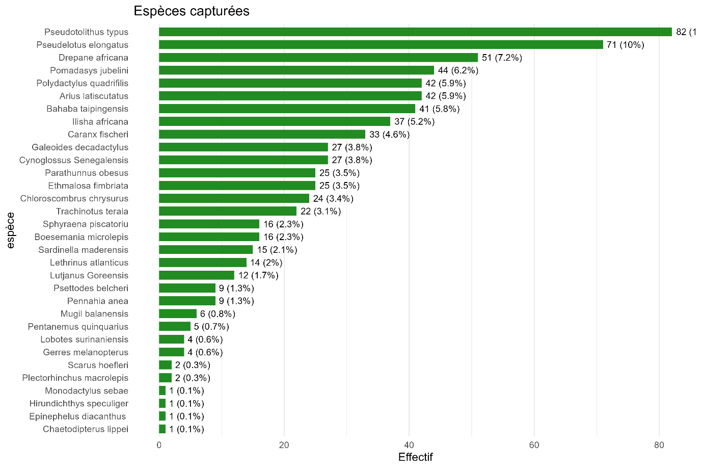 Figure 1 : richesse spécifique des familles de poissons courant 2025 (source : Tube Awu)