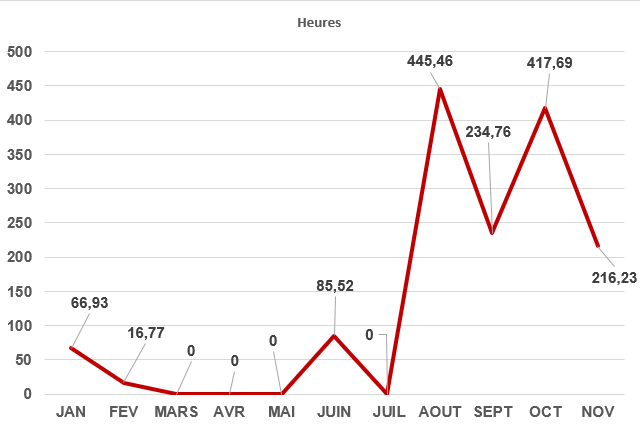 D’après les investigations menées, il ne s’agirait pas d’incursions accidentelles ou d’erreurs de navigation, puisque le phénomène se répète avec acuité. En effet, il semble parfois suivre le cycle de variation des ressources halieutiques, comme le confirment les figures (1&2). Ce cycle est marqué par une période de pêche fructueuse allant d’Octobre/Novembre à Mai, suivie par une période de « coupure », pendant laquelle le rendement est relativement faible, allant de Juin à Septembre/Octobre. Les courbes ci-dessus présentent l’effort de pêche en heure dans le PN Marin entre 2022 et 2023.